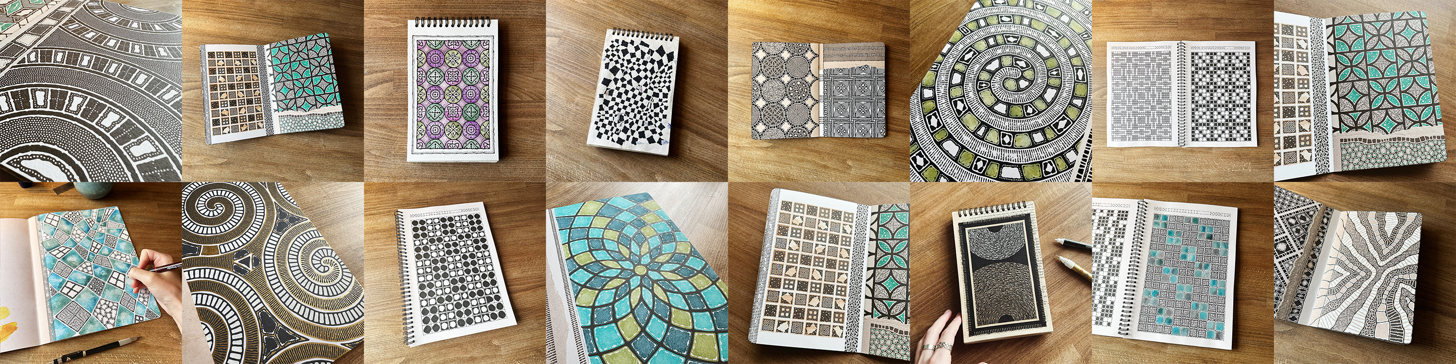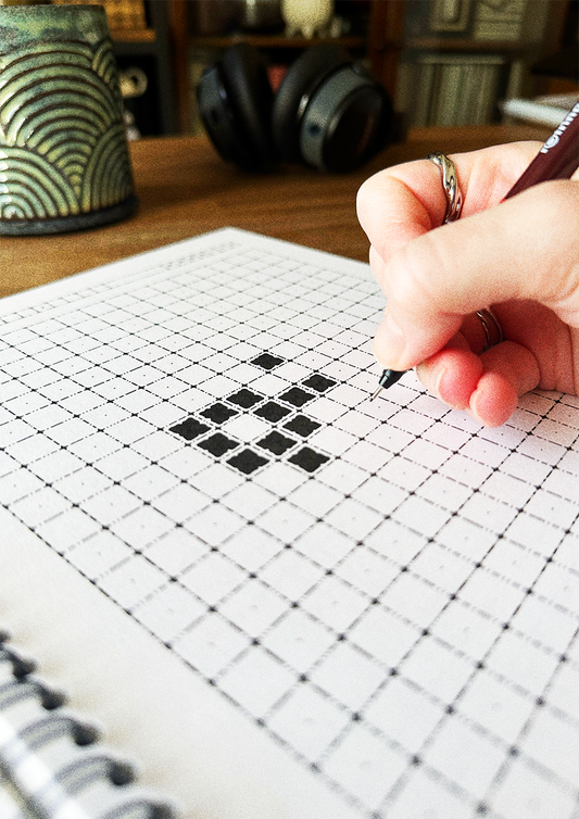Draw tiles, but in a zen way with the Zentiles Guided Drawing Book. Relax with 20 step by step pattern guides along with pages for you to create your own and a fill cheat sheet.