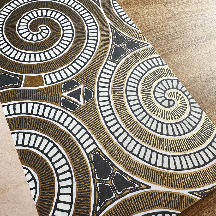 I used a gold paint marker to fill in the spirals with uneven lines.