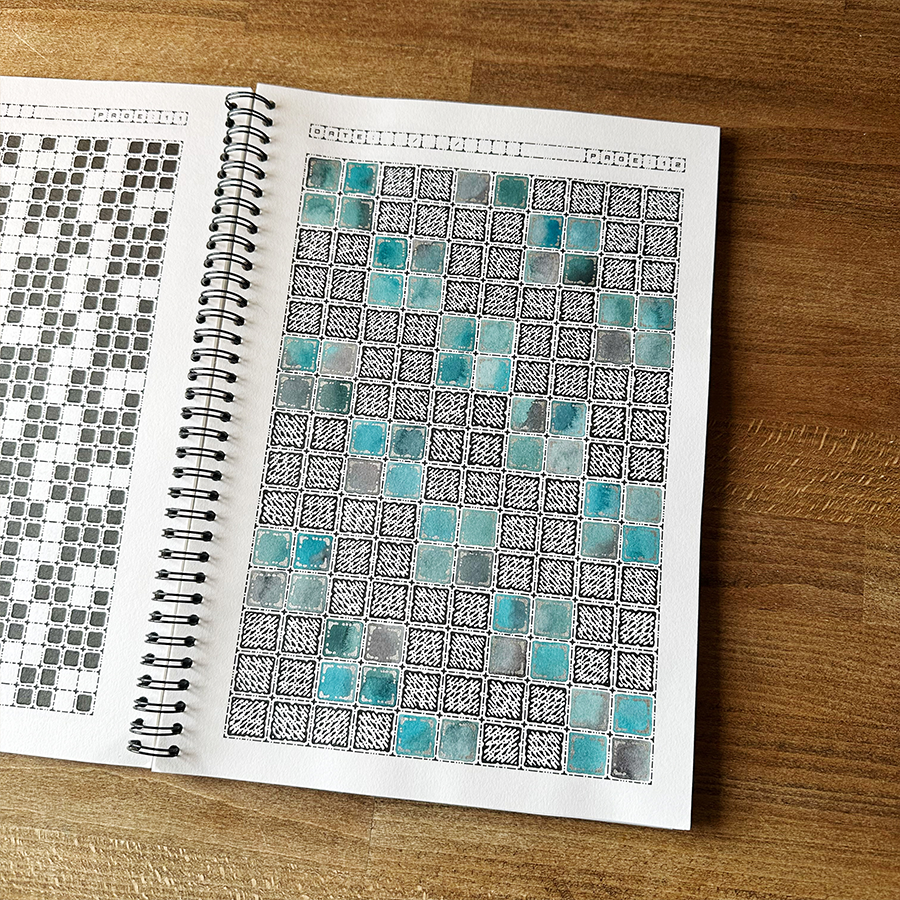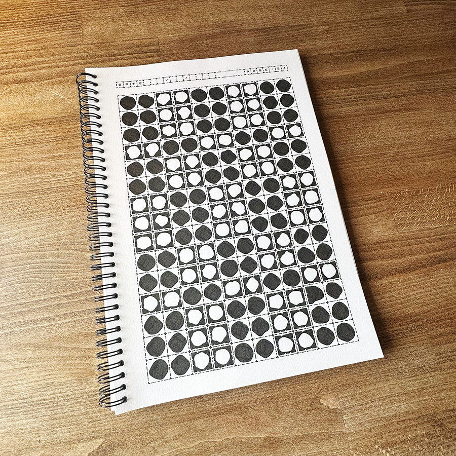 I wanted to make this book because it's essentially a more professional version of my favourite of pattern drawing method for when I just want to relax and not think to much but still enjoy a satisfying drawing session. It contains dots in some of the squares which when coloured over reveal pixel patterns.