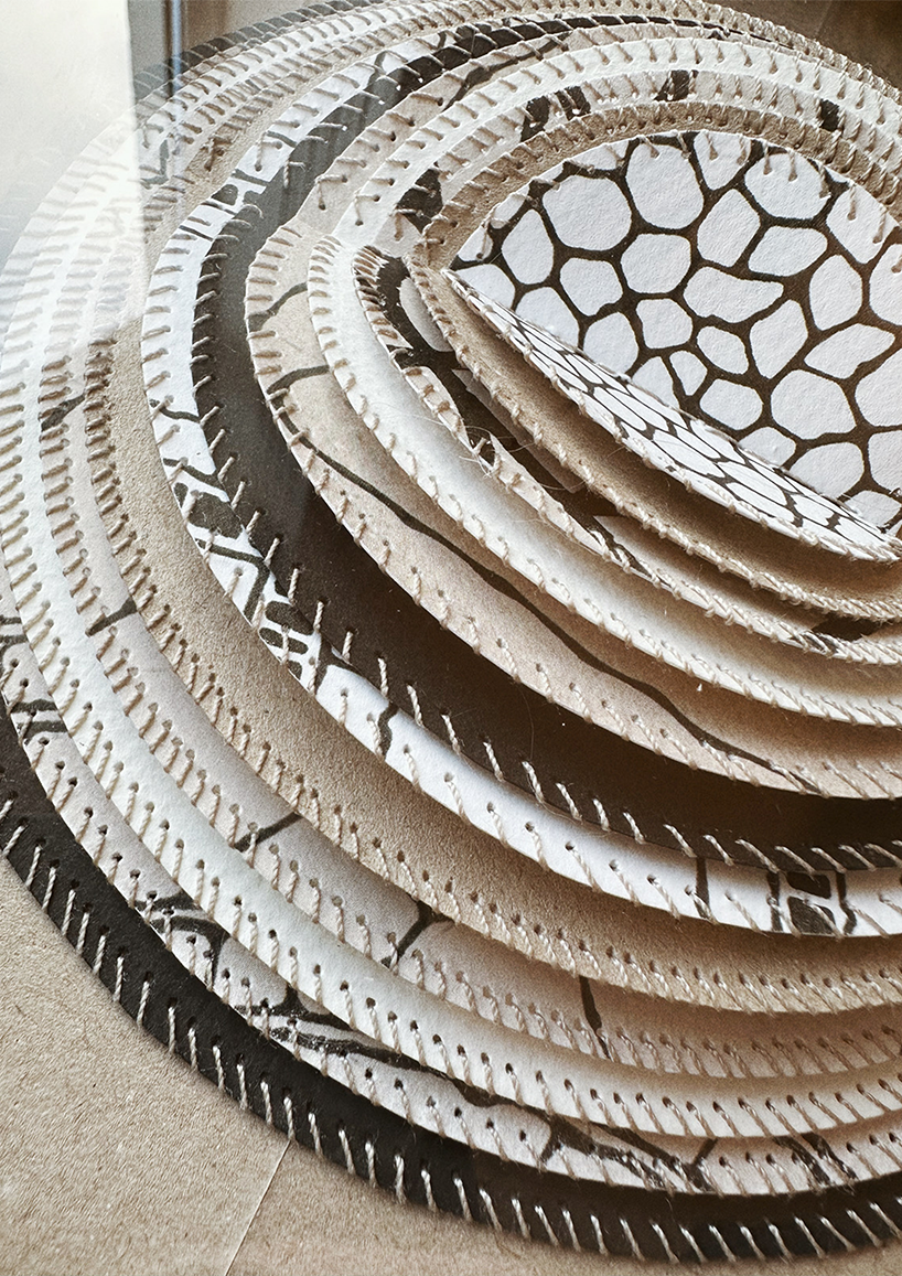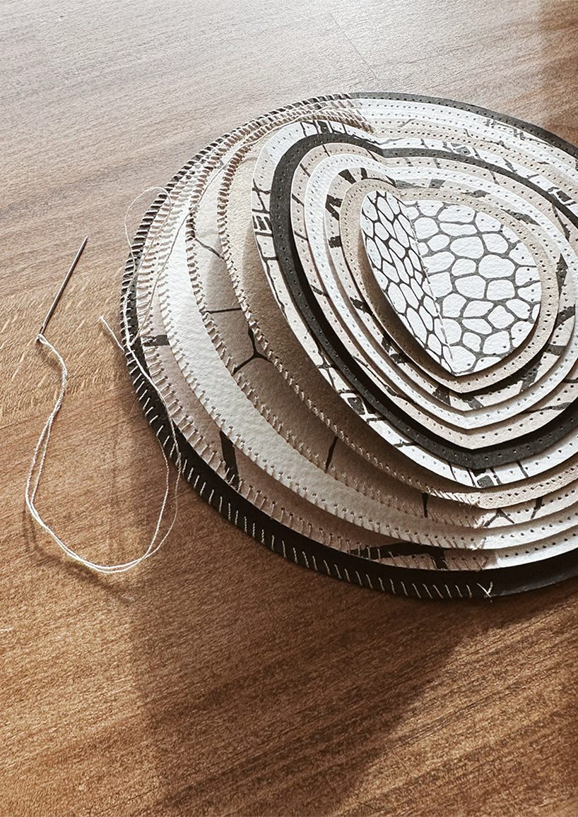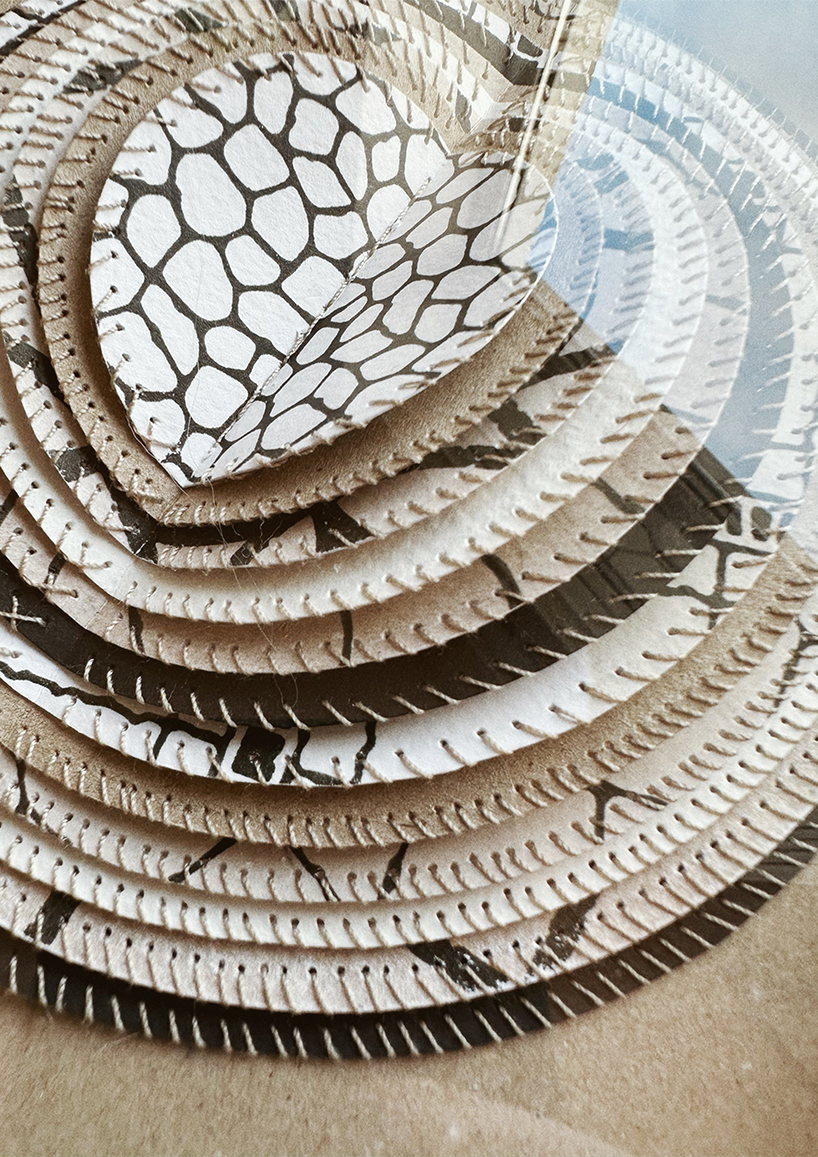 A specially curated selection of patterned and textured papers with hand-stitched edges.