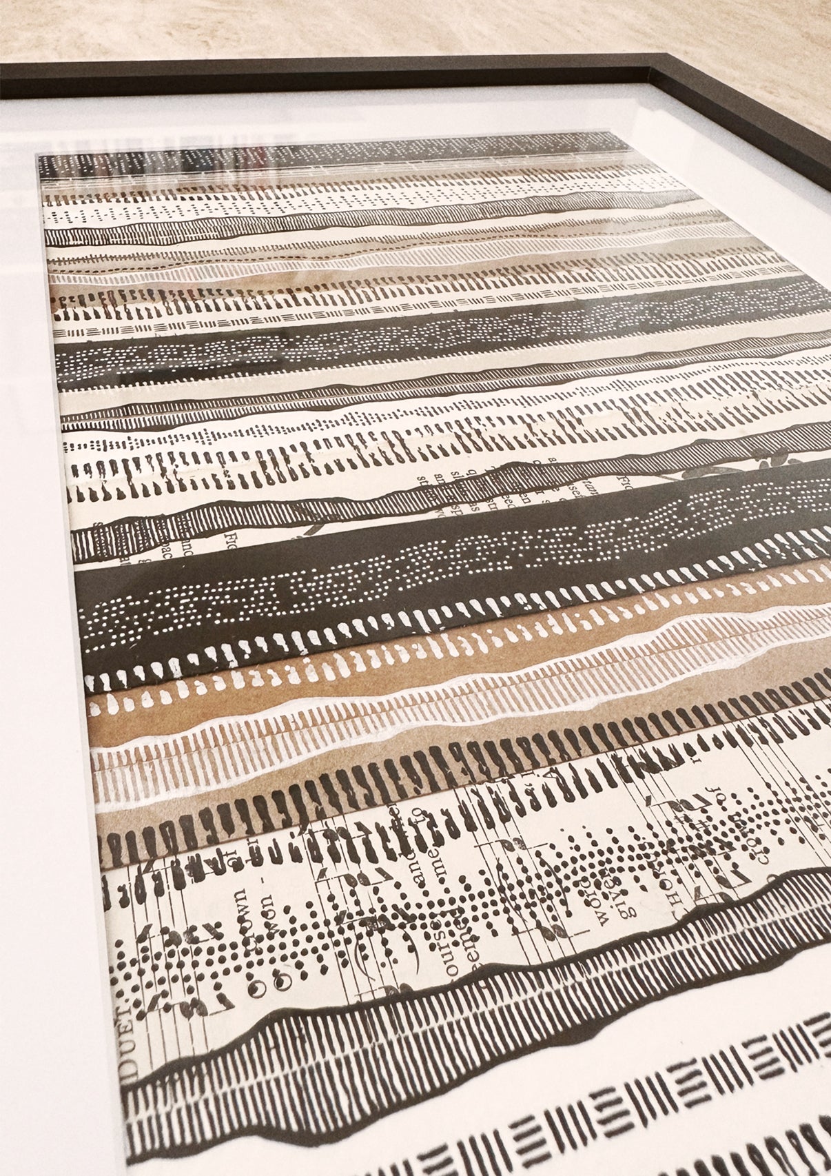 Inspired by the language of music, this collage piece was created to explore the many different ways music may be interpreted through lines of patterns.
