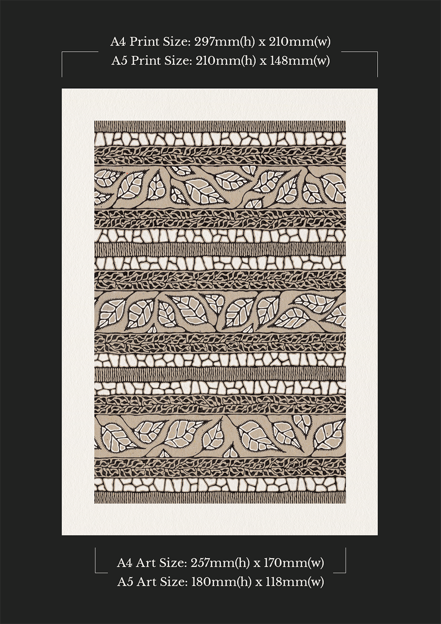 Inspired by fallen brown leaves in autumn along woodland paths. Drawn in white and black ink on a recycled kraft card. Printed onto a luxurious FSC® certified stock made up of 65% virgin fibres, 20% recycled material and 15% cotton fibres.