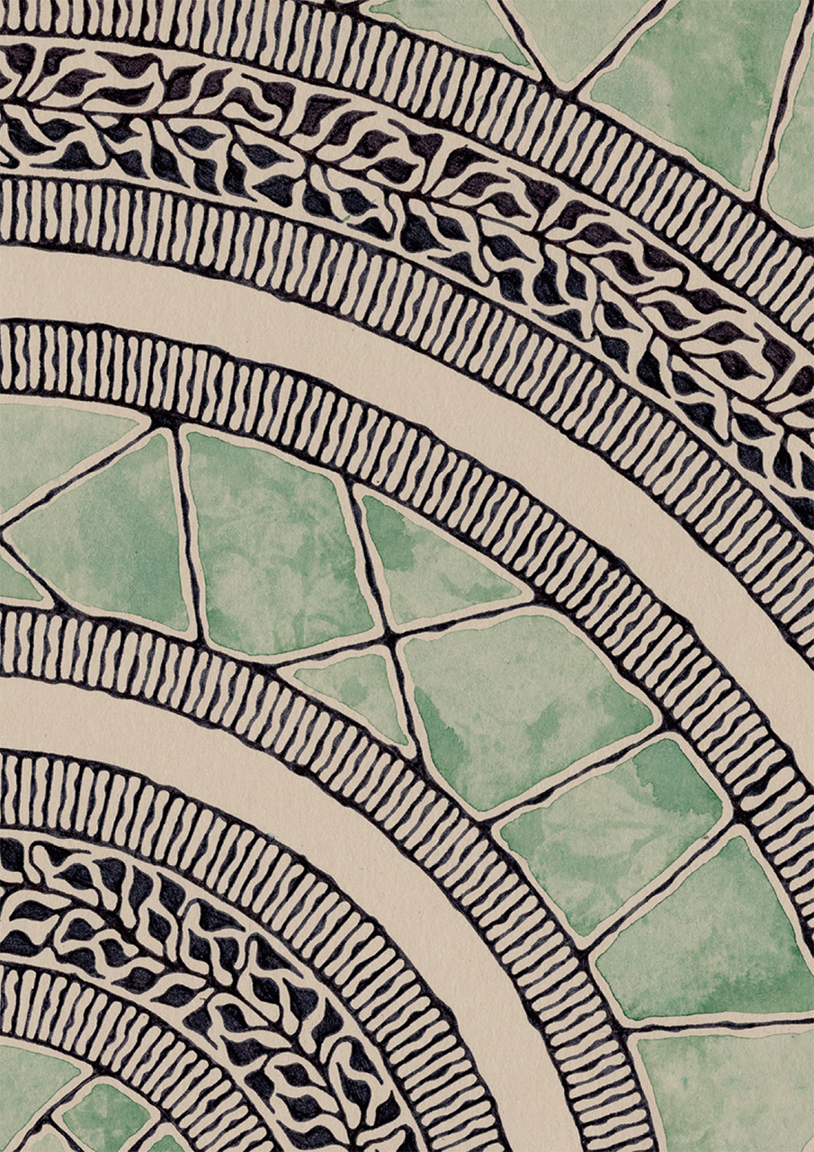 Inspired by deep forgotten wells hidden in ancient Irish forests. Painted in light jade watercolour paint with black ink details. Printed onto a luxurious FSC® certified stock made up of 65% virgin fibres, 20% recycled material and 15% cotton fibres.