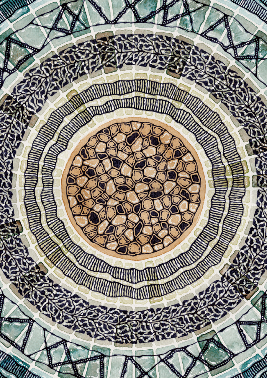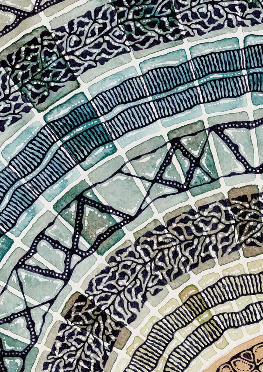 Inspired by coloured light glowing through stained glass windows. Painted in watercolour with black and white ink. Printed onto a luxurious FSC® certified stock made up of 65% virgin fibres, 20% recycled material and 15% cotton fibres.